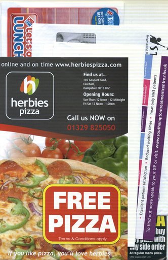 There's another pizza leaflet in there - somewhere! Here's how your leaflet could be "buried" and delivered if you go for the cheapest price...